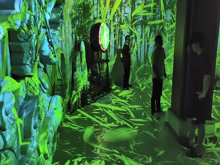 當科技與歷史奇妙結合,站在長江的源頭,你將化身為一名長江守護者,在光影交互中回到過去,既感受長江源遠流長的歷史,又參與到古城與長江的守護中去。“風起長江”全景聲沉浸式劇場將在宜賓合江門廣場夾鏡樓正式與觀眾見面,通過“聲光影”交互技術,內置先進的全景聲和杜比環繞音效,以極致的視效、音效加持,帶給觀眾非凡的感官體驗。呈現了包括宜賓的自然與人文風光在內的多種中國元素:月亮田、蜀南竹海、興文石海等。全劇以表達“保護長江生態水資源”為主題,以現代視角穿越古今歷史,向觀眾全方位呈現宜賓和長江的文化脈絡。現場通過歷史文化長廊、溶洞洞穴、酒圣山、三江口四個空間布景串聯演繹,在視覺創意與全息投影、三維立體聲效等多種數字媒體技術的綜合運用下,營造出波瀾壯闊的觀劇體驗。